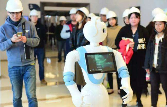 ▲在互动体验区听小机器人的讲解